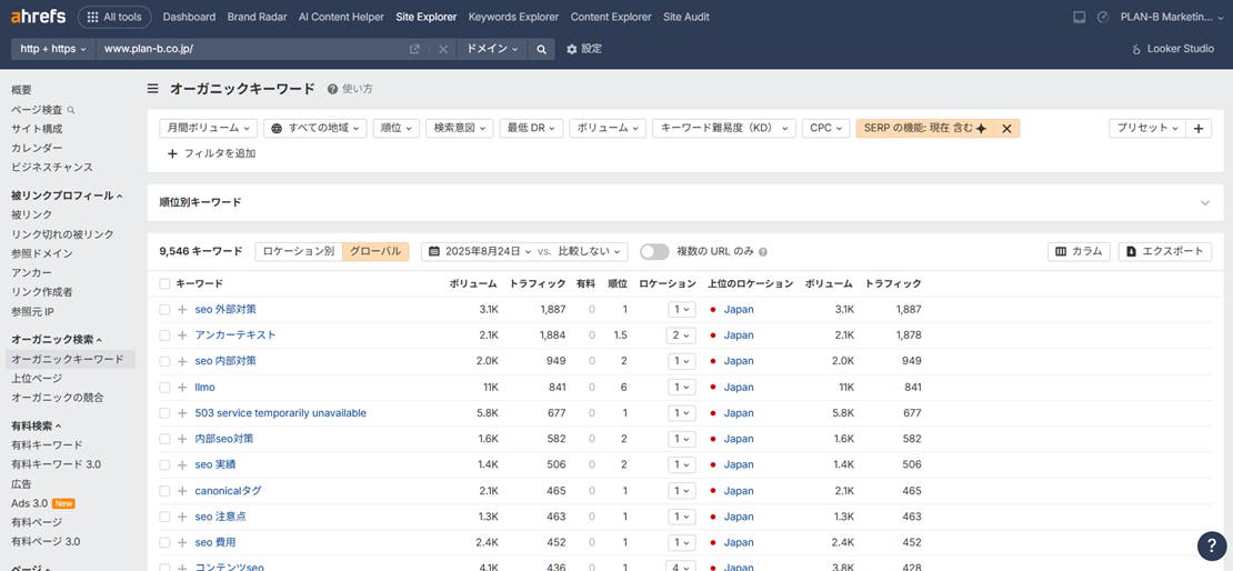 被リンク分析、競合調査、トレンドコンテンツ探索などを網羅した多機能プラットフォームとして、世界中のマーケターに利用されています。