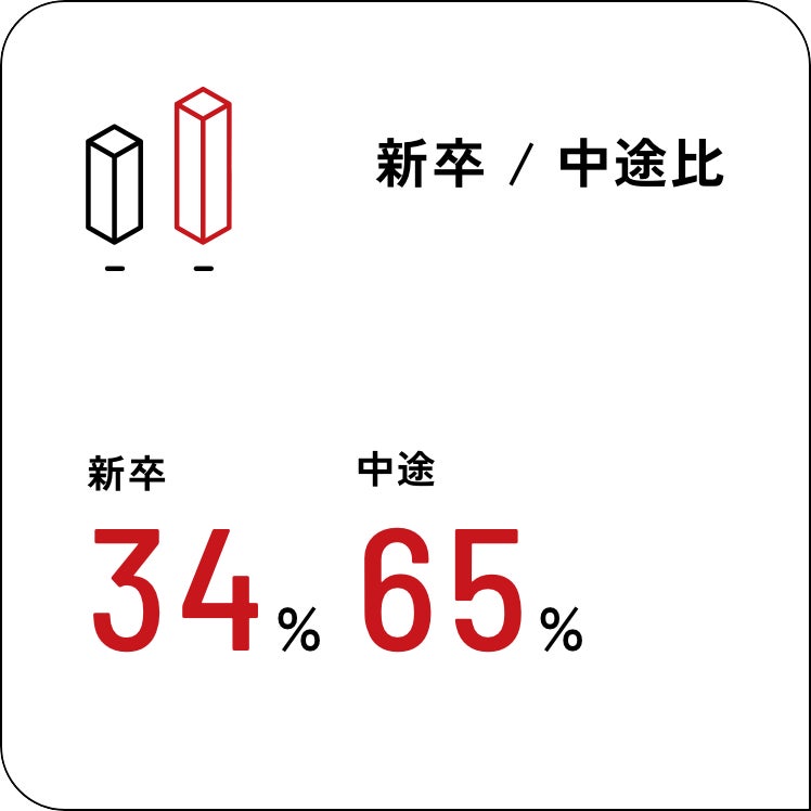 新卒/中途問わず、採用を強化しており、採用人数が毎年増加しています。新卒社員が多く在籍し、活躍していることも特徴です。